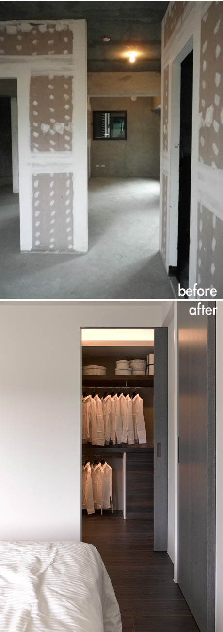 從主臥望向次臥。尚未被衣櫃遮蔽的變身前,對應變身厚的主臥更衣間。圖片引用自「早安清境八樓住家案」
