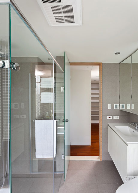最近完成的個案中,內湖山妍四季住家案的主臥房旁的衛浴空間,以及涵碧園住家案的迷你衛浴空間,是個人相當滿意的作品之一。特別是在山妍四季住家案中,我們在主臥區隔出一個更衣間,跟這個可以遠眺的衛浴空間相串連,換言之脫了衣服丟到更衣間的衣物簍,就可以直接去洗澎澎了。
